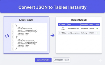 JQTable är en kraftfull Chrome-tillägg som förvandlar JSON-data till interaktiva tabeller. Den erbjuder en rad funktioner som gör det möjligt för användare att filtrera, sortera och exportera data med SQL-liknande frågor. Med stöd för djupt nestade objekt och oändlig JSON-djup, är JQTable idealisk för utvecklare, dataanalytiker och DevOps-ingenjörer. Tillägget är helt gratis med en pro-version som erbjuder ytterligare funktioner. Användare kan enkelt klistra in, ladda upp eller dra och släppa JSON-filer för att börja konvertera data omedelbart. JQTable garanterar också säkerhet och integritet genom att all bearbetning sker lokalt i webbläsaren utan att data skickas till externa servrar.